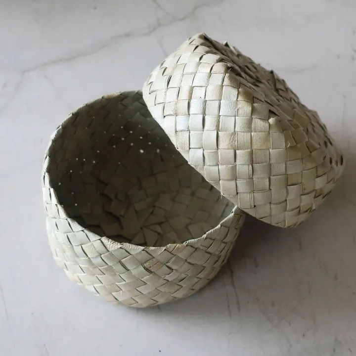 カラグモイつづらでおなじみのボックスに丸い形ができました。 お裁縫道具を入れたり、おにぎりがころころと入っているとかわいいです◎