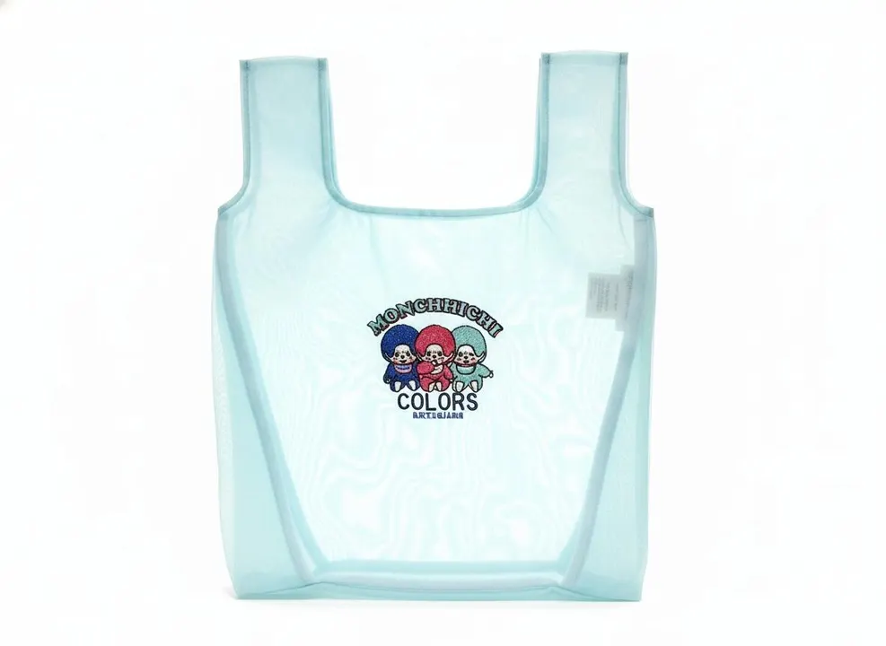 モンチッチ colorオーガンジー刺繍バッグ ブルー