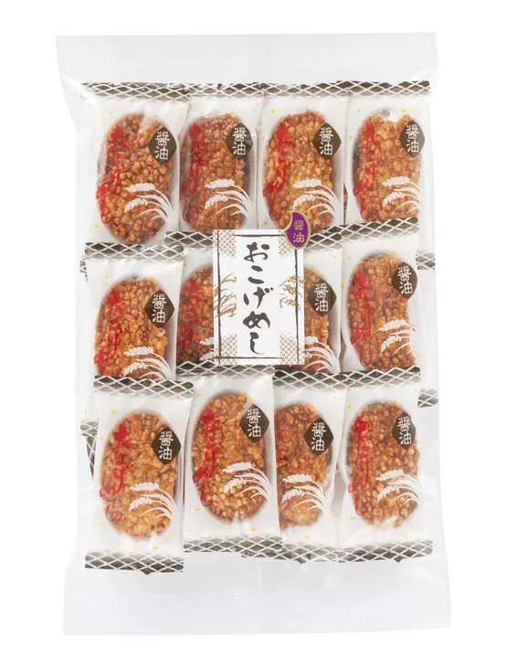 昔ながらの懐かしい味・・・・ 釜戸で炊いたごはんの底には「おこげ」。そんな「おこげ」のようなせんべいです。 醤油味のパリッと香ばしい「おこげめし」せんべいです。 リピート率も高い、人気の商品です!!