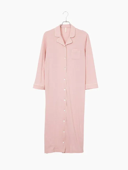 シンプルなフルレングスのスリーピングローブ。 ふんわりと編み立てられたオーガニックコットンがほどよく空気を含み、全身をやわらかく包みます。 襟ぐりやカフスにあしらったディテールのパイピングが上品な印象に。 前のボタンを開けて、ロングカーディガンのように羽織ったりと、ルームウェアとしても活躍します。 SkinAware では「ボタニカルダイ(植物染め)」によってオーガニックコットンの特性を損なわず、様々な色を表現しています。 ボタニカルダイとは、 植物の花、葉、果実などから抽出した染料をタンパク質で生地に吸着させ、植物本来の持つ鮮やかな発色を実現した新しい染色技術。 自然とサイエンスを融合させたハイブリッドな染色方法は、植物が持つエネルギーを感じることができ、リラックスやヒーリング効果も期待されています。 カラーは、女性の体のバランスを整える効果があると言われているラズベリーで染めた「ピンク」。