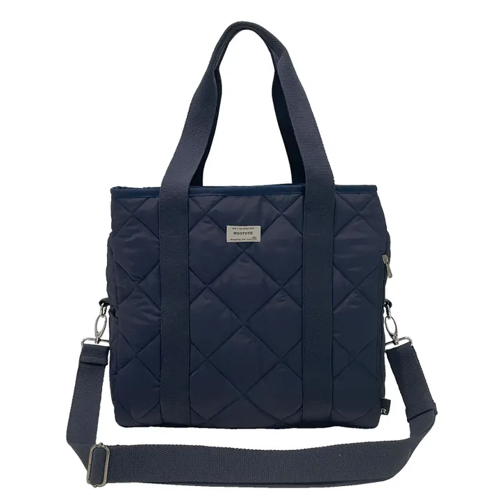 In TRIP by ROOTOTE 旅行は準備から楽しい! 移動、街歩き、アクティビティ、ホテルでのワクワクを思い浮かべて… ROOTOTEがもっとFun Outingな旅をお手伝い。 普段使いから旅行まで! お出かけに快適さを。 旅行や通勤・通学、習い事など… 様々なシーンで大活躍です。 大きい荷物やたくさんの荷物を運べる大容量サイズ。 13インチPC、A4サイズの書類などがすっぽり入ります。 天マチ付きのファスナー開閉で、中身を隠せて安心です。 キルティング加工を施しました。 中綿入りで布地にプクッと立体感が出て、おしゃれでかわいい仕上り。 使いやすい触り心地。 体に寄り添うやわらかさがありながら、自立するシルエットです。 通勤帰りにジムに行きたい時など… たくさんのポケットとたっぷりマチが便利! 前後の仕切りと本体で、書類と着替えを分けて持ち運べます。 細身のロッカーにも入れやすいサイズ感です。 前後の仕切りの中にも内ポケットがあり、すぐに出したいアイテムがすぐ分かる! バッグの中で散らかってしまいがちな小物も整理整頓できます。 モノの出し入れがしやすく、中身もパッと確認できます。 付属の巾着は靴入れやアンダーウェアー入れとしてなど、多目的に使っていただけます。 背面には、キャリーケースに装着できるループ付き。 キャリーバー幅22.5cmまでのキャリーケース対応です。 キャリーケースの上にのせて持ち運びが可能! ファスナー付きのポケットもあり、スマホなどの貴重品小物の収納にも。 家族のお出かけがもっと楽しくなる子育てバッグとしても重宝します。 取り外しができるショルダー付きで、トートバッグ・ショルダーバッグの2wayで使えます。 肩掛けや斜めがけなど、両手をふさぐことなく使用できます。