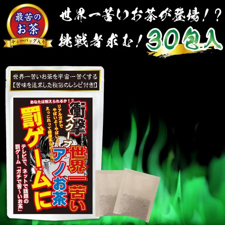 【世界一苦いお茶「苦丁茶」とは?】 中国で古くから飲まれてきた健康茶で、圧倒的な苦さが特徴。「苦味の王様」とも呼ばれ、最初の一口で衝撃必至! ノンカフェインなので就寝前でも安心。ティーバッグ式で、苦さの調整も簡単です。 【罰ゲームにも◎選べる4種類のサイズを展開】 あまりの苦さに「一口で後悔する」と言われるほど。パーティーの罰ゲームにも最適!さらに、世界一苦いお茶を宇宙一苦くする秘伝のレシピ付き◎サイズはお試しの4包〜大容量の30包まで展開しているため一人でも大人数でも楽しめます。 【原材料・成分】 苦丁(モチノキ科・中国) 【内容量】 1袋×30包入り 【賞味期限】 製造日より2年 ※当サイトでご購入の場合、お届けする商品は賞味期限が365日以上の商品をお届けいたします。