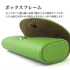 とても丈夫なボックスフレームのメガネケース(眼鏡ケース)。カードボード製の硬い芯材を組み立てた箱枠を革で包んだハードタイプです。まるで革で作った箱のようなフォルムはとても丈夫で、大切なメガネをしっかりと保護してくれます。またレンズが当たる内側背面部分には厚さ約2ミリのクッション材を入れた安心設計。マグネット式なので蓋の開閉はとてもスムーズで、レンズやフレームに負担を掛けることはありません。お気に入りのメガネを大切に保管・携帯したい方には特にお勧めしたい逸品です。 素材はペブルグレイン柄の EMBOSSED LEATHER(型押しレザー)、クローム鞣しならではの柔らかな手触りと鮮やかな発色が自慢です。また型押し革は表面の傷も目立ちにくく、末永くご使用いただけます。インナーにはとても滑らかな手触りのマイクロファイバースエードを配色しました。手に心地良く収まるサイズ、鮮やかな発色の型押し革、リーズナブルな価格も相まって、 ※ サイズ:約 155 × 62 × 40 mm(内寸:約 145 × 55 × 25 mm) ※ 外 側:ペブルグレイン型押し牛革 ※ 内 側:マイクロファイバースエード ※ 色・柄:ライトブラウン、ベージュ、ネイビー、ライトブルー、ライトグリーン、レッド、ピンク、アイボリー ※ 個 装:キャラメル箱 この商品のセールスポイントは、 1)ボックスフレーム カードボード製の硬い芯材で組み立てた箱枠タイプです。とても頑丈な作りが大切なメガネをしっかり保護します。 2)クッションパッド 内側背面に約2ミリ厚のウレタンシートを仕込みました。メガネフレームはもちろん、レンズもしっかり保護します。 3)マグネットボタン 開口部の留にマグネットボタンを使用しました。蓋の開閉はスムーズで、メガネに負担をかけません。 4)マイクロファイバースエード 内生地にマイクロファイバースエードを組み合わせました。滑らかなな繊維がレンズとフレームを優しく保護します。