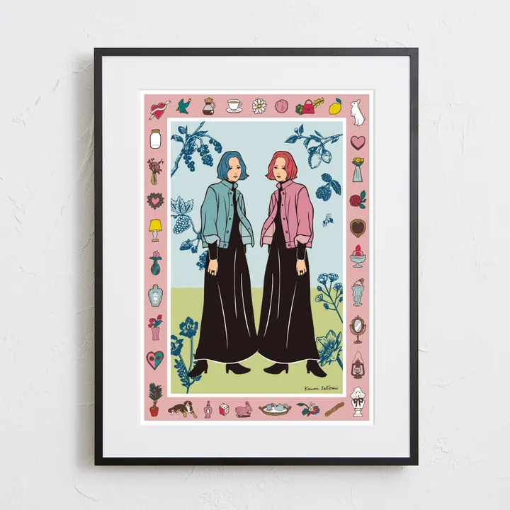 アーティスト -PROFILE- Satomi Kawai(サトミ カワイ) イラストレーター&グラフィックデザイナー 女子美術大学デザイン学科卒業 デザイン会社での勤務経て2015年フリーランスに。 ちょっとシュールで小洒落たイラストを描いています。 【作品について】 可愛いと思うものを写真のフレームにするイメージで描きました。 作品名:FRAME 手法:イラスト、デジタル ペーパー:高品質半光沢紙 マットカラー:白 マット*:DXホワイト芯 100%バージンパルプ/PH7・中性紙(2mm厚) ※全てのアートにマットがつきます フレームカラー:黒、白、無垢(3種類から選択) ※マット付のため通常とはフレームサイズが異なる規格となります。 【マット*とは?】 アートポスターの周りに挟んだ厚紙の事。 マットを使わない時に比べ余白により広がりが生まれ、作品の新たな一面を引き出せ作品の見栄えがグッと良くなります。また、額縁のガラス面と作品が直接触れたままにしておくと、くっついて作品を傷つけることがあります。マットを使用することでガラスと作品の間に空間ができ、作品を保護することができます。ブランドコンセプトにより全てのアートにマットがつきます。 ー ファッションのようにアートを ー 私達が掲げるコンセプトです! 毎日着替えるファッションの様に、アートも気軽に飾り変えて欲しい... 一旦飾り終えたアートにも光を当ててほしい... ポスター単体、またはリピートで中身だけのポスターを購入された方に"専用のハンガー"をセットでお届け。 「今までに無い!新しいアートの飾り方を提案」 飾る事がなくなった前のアートをハンガーにかけて洋服と一緒にかけてもらう。 その日の気分や、モチベーションですぐに取り換えられる様に。 もちろん、魅せる収納としても今までにないおすすめの飾り方です。