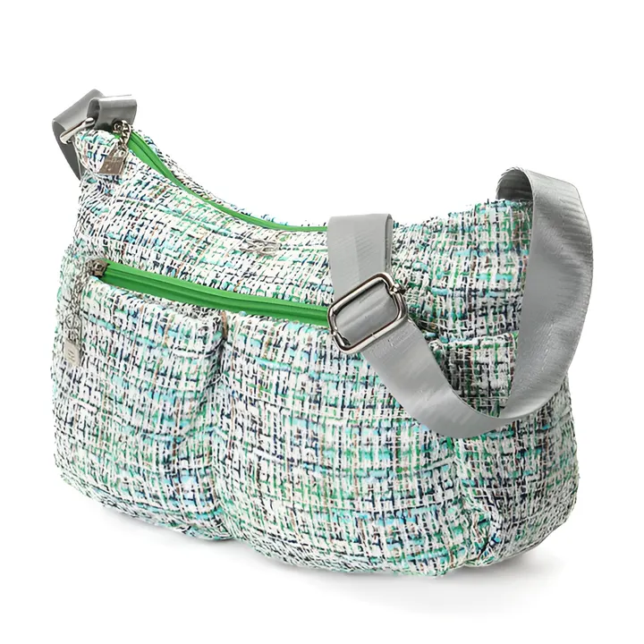 グリーンツイード素材の可愛らしいショルダーバッグです!カジュアルなコーディネイトの幅も広がります♪開口タイプ/マグネット式■ポケット/(内側)ファスナー×1、オープン×2(外側)前ファスナー×1、オープン×2 後ファスナー×1、両サイドオープン×各1