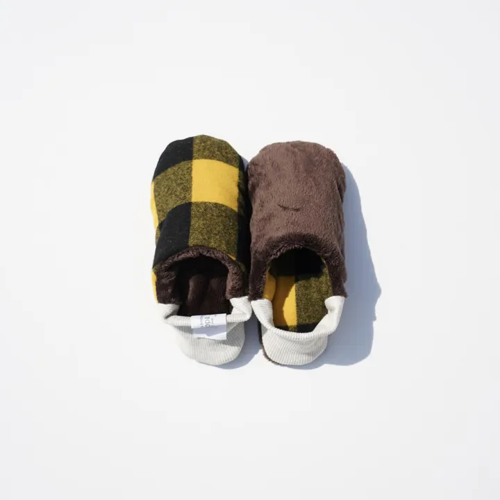 カジュアルなブロックチェックも裏生地のファーと合わせるとシックで落ち着いた印象に。ポップなカラー展開なのでお部屋のインテリアに合わせてお選びください。 ※受注生産のため現在の在庫についてはお問い合わせくださいませ。