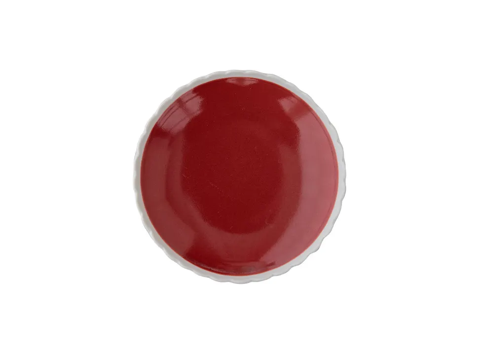 ドイツ語で「冠」を意味する“Krone(クローネ)”。 縁がまるでスカラップ刺繍のようにひらひらとしたデザインの器は上質な印象とテーブルにほどよいアクセントを与えてくれます。 おもてなしのシーンにおすすめなシリーズです。 醤油皿、薬味皿などに。 和菓子を盛って、お茶と一緒にお客様をおもてなししたいシーンにも◎ 波佐見焼の磁器で一見洋風な雰囲気ですが、ひらひらの白縁は素焼きになっており釉薬とのコントラストが和食にもよくマッチします。