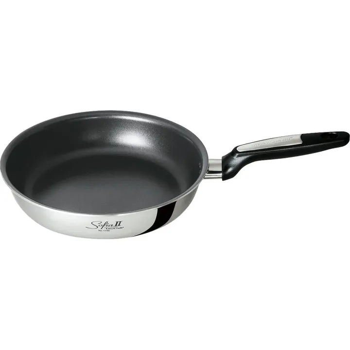 ステンレスとアルミの全面2層構造にナヴァロン3コート(高密度3層フッ素コーティング)と使いやすいハンドルを採用。IH対応でお求め安い価格も魅力