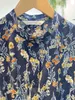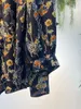花柄アンティークデシンバンドカラーブラウス ネイビー系