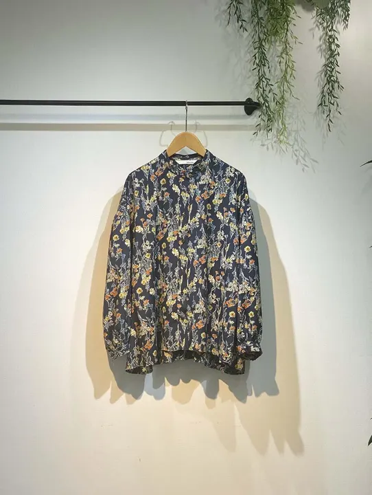 落ち着いた色合いの秋冬らしいプリントのブラウス。 ジャケットやカーディガンとのスタイリングや、スッキリとしたゆとりがありタートルなどとのレイヤードスタイルも◎ 優しいヴィンテージ感が上品なブラウスです。 しなやかなコシとふっくらとした膨らみのある風合い、程よい落ち感があり、肌触りの良い素材です。