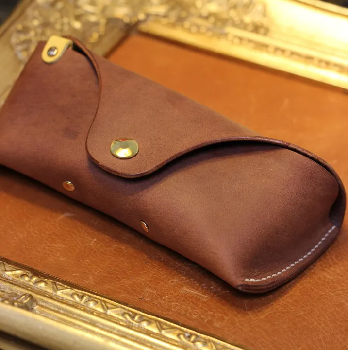 サイズ:約170×70mm(全て手作業で仕上げますので、若干の誤差が生じます。) イタリアの老舗タンナーテンペスティ社の仕上げる上質なレザーを使用したメガネケースです。 レザー本来の良さを引き立てるため厚みの調整をあえてせず、上質なレザーの良さを十二分に味わえる製品に仕上げました。 光沢のあるキャメルレザーはオイルがしっかり浸透しているため、乾燥の心配は無く、しっとりとしたしなやかな質感。 メガネを持ち歩く時もオシャレを意識できるように上品に仕上げました。 立体感のある構造は多様なメガネ、サングラスにも対応でき、カバンの中でメガネが潰れてしまう心配もありません。 内部にはメガネがしっかりホールドできるように鼻あてを設置てあるため、アクティブな生活スタイルでも問題ありません。 お気に入りのアイウェアをお気に入りのケースで持ち歩く、あなたの素敵なライフスタイルを彩ります。