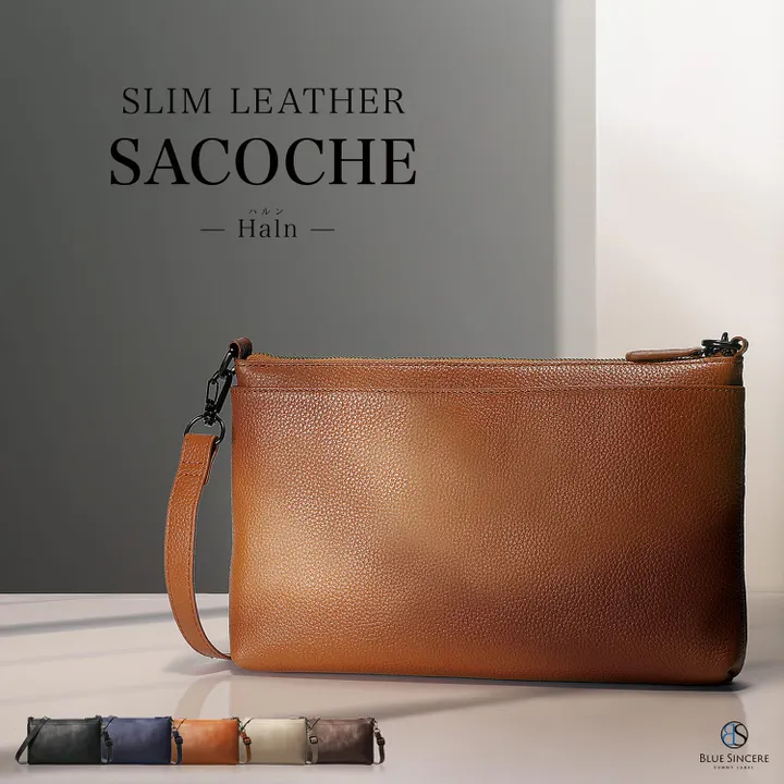 【ブルーシンシアとは?】 「ブランドの発展とともに、バングラデシュの社会問題を解決する」という理念を掲げ、 バッグや財布を自社工場のバングラデシュの職人たちと、その土地の素材の可能性を追求し、 先進国でも通用する高機能なプロダクトを生産しています。 【選び抜いた環境想いの本革シュリンクレザー】 「ずっと長く愛用してほしい。」その想いから素材選びに徹底的にこだわりました。 素材は耐久性に優れた植物タンニン鞣し加工をしました。すぐに傷が付いてしまう羊革や合革では使う度のお手入れが大変ですが、傷が付きにくく目立ちにくい革を使用しているため毎日ガシガシお使い頂くことができます。 【5ポケットで利便性抜群】 すぐに取り出したいスマホやミニ財布は外側のマグネットポケットへ。 内側にはファスナーポケット、フリーポケットが合計3つあり大事なものはここへ。シンプルデザインをさらに引き締めるため、ファスナーはマットブラックで統一。 【一押しコメント】 余計な装飾をそぎ落としたシンプルでスリムデザインな牛本革のサコッシュバッグは、メンズ・レディースを問わずお使いいただけるユニセックス仕様です。スリムかつコンパクトながらスマホやお財布、定期入れに小物など余さず収納出来るので、大容量で便利!さらに5つの収納スペースがあるので収納を分類できるのもGOOD!ショルダーベルトは取り外し可能&サイズ調整が可能なのでショルダーバッグ・ボディバッグ・バッグインバッグ・クラッチバッグ・小物入れなど多彩な使い方ができます。ブル―シンシア珠玉のレザーサコッシュをどうぞお楽しみください♪