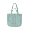 2ハンドルトートバッグ ストライプブロックプリント ミントブルー