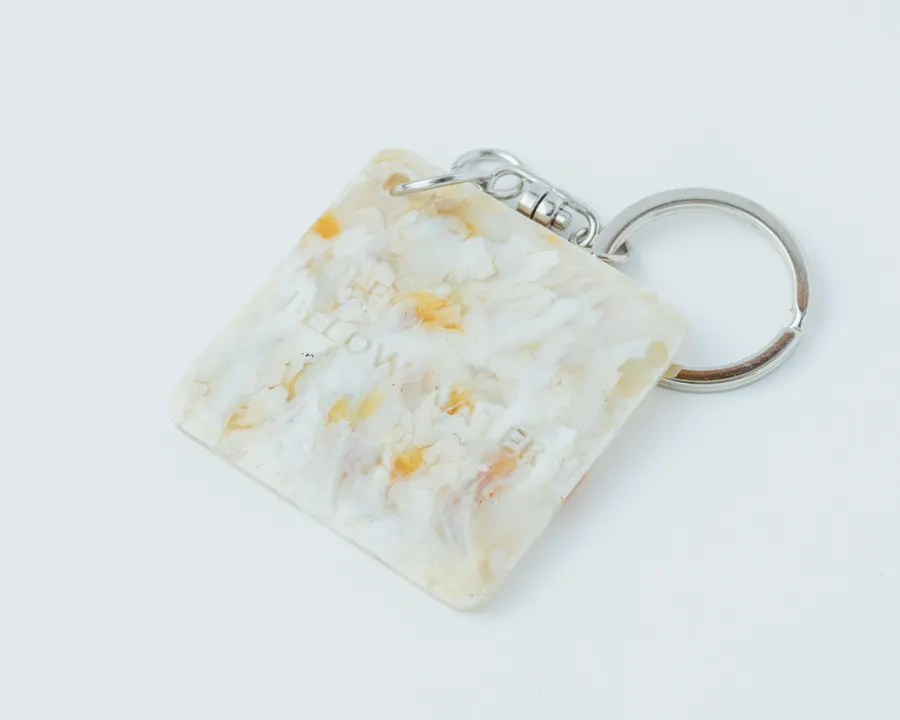 海洋プラスチックから生まれた、buoyの四角キーホルダーです。 幾何形体モチーフのシンプルなキーホルダーシリーズが誕生しました。 大人の男性でもファッションの一部に取り入れやすいをコンセプトにbuoyの特徴であるマーブル模様を楽しめるデザインになっています 表面にはbuoyのロゴ、裏面にはSDGs14の目標キャッチコピー「LIFE BELOW WATER(海の豊かさを守ろう)」が刻印されています。 buoyの製品は、着色などの加工を一切加えず、海岸に漂着し回収された海洋プラスチックそのものの色味を活かしています。 明るい発色が魅力の素材ですが、複数の色が混ざり合うことで、有機的なモザイク模様に。ひとつとして同じ表情がない、世界に一つだけの製品です。 日常に彩りを添える一品として。 自分へのご褒美にも、ギフトにもおすすめです。