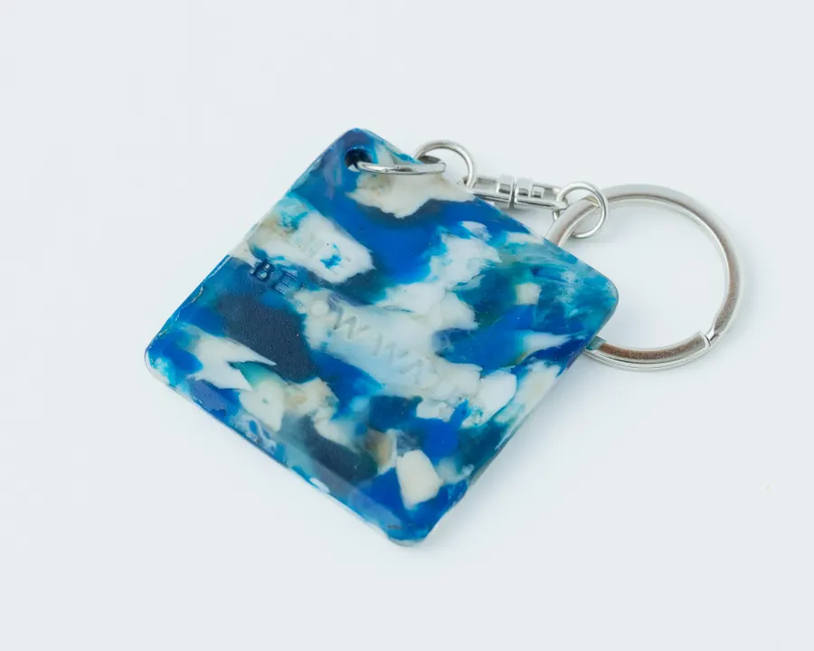 海洋プラスチックから生まれた、buoyの四角キーホルダーです。 幾何形体モチーフのシンプルなキーホルダーシリーズが誕生しました。 大人の男性でもファッションの一部に取り入れやすいをコンセプトにbuoyの特徴であるマーブル模様を楽しめるデザインになっています 表面にはbuoyのロゴ、裏面にはSDGs14の目標キャッチコピー「LIFE BELOW WATER(海の豊かさを守ろう)」が刻印されています。 buoyの製品は、着色などの加工を一切加えず、海岸に漂着し回収された海洋プラスチックそのものの色味を活かしています。 明るい発色が魅力の素材ですが、複数の色が混ざり合うことで、有機的なモザイク模様に。ひとつとして同じ表情がない、世界に一つだけの製品です。 日常に彩りを添える一品として。 自分へのご褒美にも、ギフトにもおすすめです。