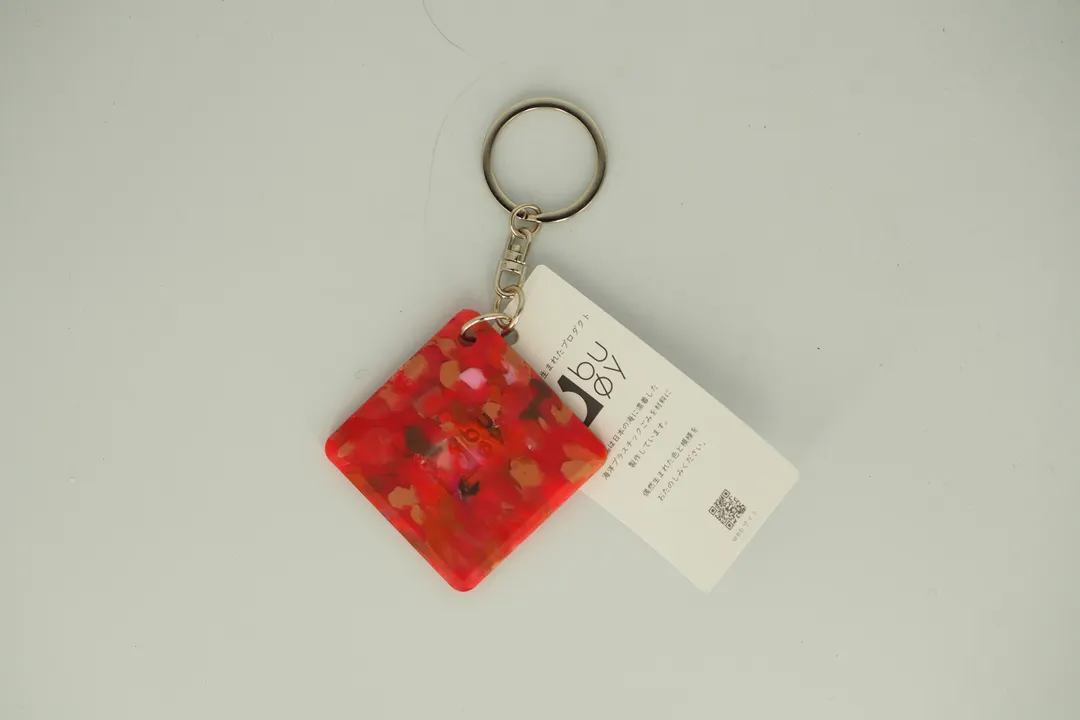 幾何形体モチーフのシンプルなキーホルダーです。 表面にはbuoyのロゴ、裏面にはSDGsの目標キャッチコピー「LIFE BELOW WATER(海の豊かさを守ろう)」が刻印されています。 buoyの製品は全て日本各地で回収された海洋プラスチックごみを材料に作っています。着色などの加工を加えず、偶然海岸に漂着した色味でできています。 明るい発色が特徴のプラスチックですが、複数の色が交じり合うことでちょっと有機的なモザイク模様が特徴です。 製品にはひとつひとつゴミの漂着地域が明記されています。日本で起きている海洋ごみの問題をリアルに感じることができます。 また、商品に添付されているQRコードを読み込むとそれぞれの回収を行ったビーチクリーン団体さんの情報を見ることができます。 ------------------------------------------------------------------- 海洋プラスチックごみを材料に変える独自技術buoyの特徴 (buoyは海洋プラスチックごみ素材使用を前提にした株式会社テクノラボの独自技術により成形しています。株式会社テクノラボは本技術において特許取得済み) ◆材料を分けないで成形するため生まれる独自の模様 材料はすべて着色せず海洋ごみの色を活かして成形しています。偶然生まれる色と模様は回収された漂着ごみによって決まります。 ◆製品の重さが海洋ごみの重さ 製品をコーティングしているフィルム以外、混ぜ物などせず海洋ごみでできているので製品の重みから海洋ごみ問題を感じられます。 ◆製品にすべて材料の漂着地を明記 buoyは日本各地のビーチクリーンボランティアや企業の方から材料を提供していただいています。これらの材料は時期と地域を分けて管理され、製品にはすべて材料産地のシールを貼り販売しています。 buoyの材料産地をきっかけに回収された地域のことを知ってほしいとの思いからbuoyでは団体様の紹介ページを作成しています。 http://www.techno-labo.com/rebirth/partner/ -------------------------------------------------------------------