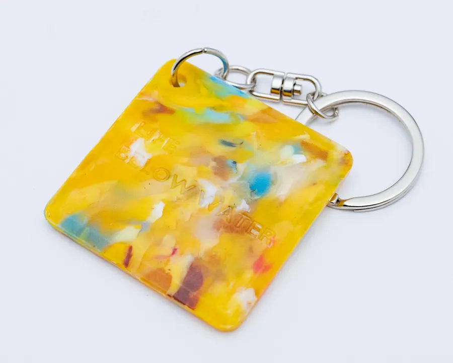 海洋プラスチックから生まれた、buoyの四角キーホルダーです。 幾何形体モチーフのシンプルなキーホルダーシリーズが誕生しました。 大人の男性でもファッションの一部に取り入れやすいをコンセプトにbuoyの特徴であるマーブル模様を楽しめるデザインになっています 表面にはbuoyのロゴ、裏面にはSDGs14の目標キャッチコピー「LIFE BELOW WATER(海の豊かさを守ろう)」が刻印されています。 buoyの製品は、着色などの加工を一切加えず、海岸に漂着し回収された海洋プラスチックそのものの色味を活かしています。 明るい発色が魅力の素材ですが、複数の色が混ざり合うことで、有機的なモザイク模様に。ひとつとして同じ表情がない、世界に一つだけの製品です。 日常に彩りを添える一品として。 自分へのご褒美にも、ギフトにもおすすめです。