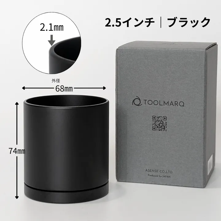 TOOLMARQ 切削アルミ|デスクトップ・プランター BMシリーズ|2.5インチ – サボテンや多肉植物にぴったり。手のひらサイズ、清潔感&高級感があるミニプランター – ■商品概要 コンパクトなサイズ感で、サボテンや小型の多肉植物にぴったりな無垢アルミ製の室内用プランターです。 市販2号苗の鉢カバーとしてもピッタリのサイズ、直接植え込む鉢としても使用でき、デスクや棚の上、キッチンの隅など狭いスペースでも美しく収まります。またプロユースでは、ラウンジ、カフェ、レストラン、などのBOXテーブルにも置けるサイズ感です。 ■この商品が生まれた背景 室内で植物を楽しむ人が増える中、こんな声が多く聞かれるようになりました。 「仕事机に置けるデザインの植木鉢が見つからない」 「鉢は気に入ったけど、その鉢に合う水受け皿がない」 「インテリアのテイストに合う植木鉢がない」 「室内では水受け皿に溜まった水が見えて不潔に感じる」 多くの市販品は屋外向けが前提で、室内使いでは“ちょっとしたストレス”がつきもの。 TOOLMARQは、そんな日常の違和感に着目し、室内での使用に特化した植木鉢・鉢カバーとして開発されました。 ■特徴と機能(5つのこだわりポイント) 1.受皿ごと持ち上げられる、片手で持ち運びできる。 2.鉢底に水の受け皿付き 水を受皿に貯めることができます。 3.机上でずらしやすい 傷がつきにくく、移動がスムース 4.鉢底の通気性を確保 通気性が高く、根腐れを防ぐオリジナル構造 5.土ごと押し上げ可能 底面から押し出して植え替えしやすい ■おすすめの使い方 市販の1〜2号サイズ(直径6cm以下)の育成ポットからの植え替えに最適。 小ぶりなサボテンや多肉植物を入れて、デスク・洗面所・本棚・キッチンカウンターなどに設置すれば、空間にグリーンの彩りと高級感を添えられます。 ■こんな方におすすめ 植物をお部屋にしたいけど清潔感も大切にしたい方 インテリアのテイストと植木鉢のデザインテイストを合わせたい 植物を育てるのが好きな人への贈り物を探している方 植物の植え替えを簡単にしたいと思っている方 ■プロユース(金属製で長期で財貨感が維持できます。) ・カフェ・レストランのオーナーさまShop什器として ・インテリアデザイン会社さま、お客様へのデザイン提案 ・店舗什器/新築物件の内装備品/店舗デザイン案件 ・オフィスユース、会議室や応接ルームの空間の質をUP ・ホテル内装、カウンター、エレベーターホールのグリーン ・SHOPのブランディングアイテムとして