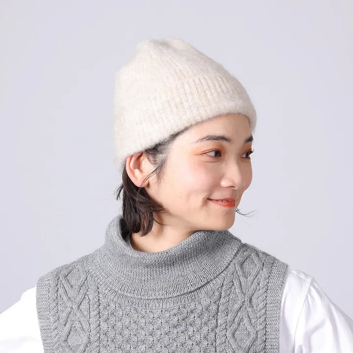 モヘヤブレンド ふんわりシャギーのリブキャップ BE