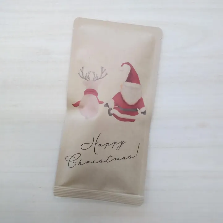 クリスマスギフトに... クリスマスカードに... 「クリスマスデザイン」のお茶メールはいかがですか? 甘い香り広がる 静岡県掛川市産の和紅茶の贈り物... 大切な人へのプレゼントに 紅茶ギフトを贈ってみませんか? 心も身体もホッと安らぐ和紅茶の手紙です。 【静岡県掛川市産の和紅茶ティーバッグ】 和紅茶とは、日本国内で生産・加工がおこなわれている紅茶です。 日本ならではの高い技術が生かされた、甘みとコクのある、上品な味わいが特徴です。 当店の和紅茶は、お茶の名産地である、静岡県掛川市の茶葉を使用し、 絶妙の焙煎によって、旨味を感じる紅茶に仕上げております。 優しい香りで、苦味・渋味成分がなく、ほのかな甘みを感じられます。 お砂糖なしでも大変おいしく頂けます。 食事の時や日常のお茶として気軽に楽しめる紅茶です。 手軽においしい紅茶を飲めるよう ひも付きのティーバッグでご用意しました。 紅茶に含まれる「紅茶ポリフェノール」「カフェイン」「テアニン」などの有効成分には、 抗酸化作用、高血圧予防、血糖値の上昇を抑制、疲労回復、血行促進など、身体に嬉しい効果が期待されています。 プチギフトにもおすすめです。 今年のクリスマスは 心も身体も温まる「おいしいクリスマスカード」をどうぞ。。。 ■ おいしい入れ方 カップにティーバッグを 1つ入れてください。 カップにお湯を注ぎ約30秒待ちます。 ティーバッグを数回上下させ きれいな色になったら飲み頃です。 ■裏面のデザインを、『郵送用』『手渡し用』からお選びいただけます。 【郵送用】 切手を貼ってポストに投函するだけでティーバッグを 手紙のように送ることができます。 【手渡し用】 余白に自由に書き込み可能! ボールペン、サインペン、鉛筆などで簡単に書くことができます。 企業様、飲食店様のノベルティーギフトにもおすすめです。 ※英語表記:Happy Christmas!