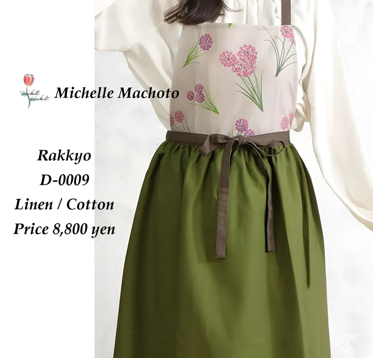 山野草をモチーフにした お洒落な ドレスエプロン。らっきょう柄 。気分が上がり、心が穏やかで豊かになる不思議なエプロン