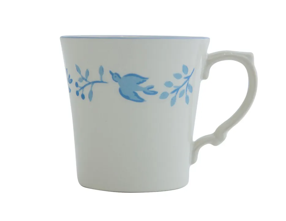 "フランスの蚤の市で見つけたお気に入り" をテーマに、どこかノスタルジックな雰囲気を感じられるような食器とファブリックのご提案です。 エテルニテとはフランス語で「永遠」という意味。 永遠の幸せを願って、リース柄と野花のパターン柄を描きました。 色味が同じ柄違いの器を一緒に使うと、統一感がありつつ食卓に動きが出て、テーブルコーディネートがワンラックUPします。 全部テーブルに並べてもうるさい感じがなく、新生活を始められるブライダルギフトにもおすすめのシリーズです。 リースとトリ柄を配した、持ち手の形状がノスタルジックな雰囲気の軽量マグです。 同シリーズのプレートSと合わせればカップソーサーのようにご使用になれます。