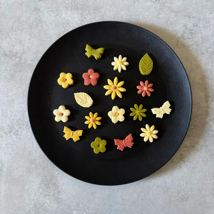 □米粉とさつまいもの花びらクッキー(犬の無添加おやつ) 色鮮やかな花びらを形をしたかわいい米粉クッキーです。 大事な愛犬との時間をもっと長く、そしてもっと楽しく。 各種クッキーの色付けに関しては、野菜パウダーを練りこんでいます。 (ビーツ、ほうれん草、かぼちゃ、おから) 犬のおやつとしてはもちろんのこと、プレゼントにも最適です。 ※小麦、卵、バター、砂糖、人工着色料は一切使用しておりません。 ※ペットの「食」の専門家であるペットフーディストが一つずつ丁寧に手作りしています。