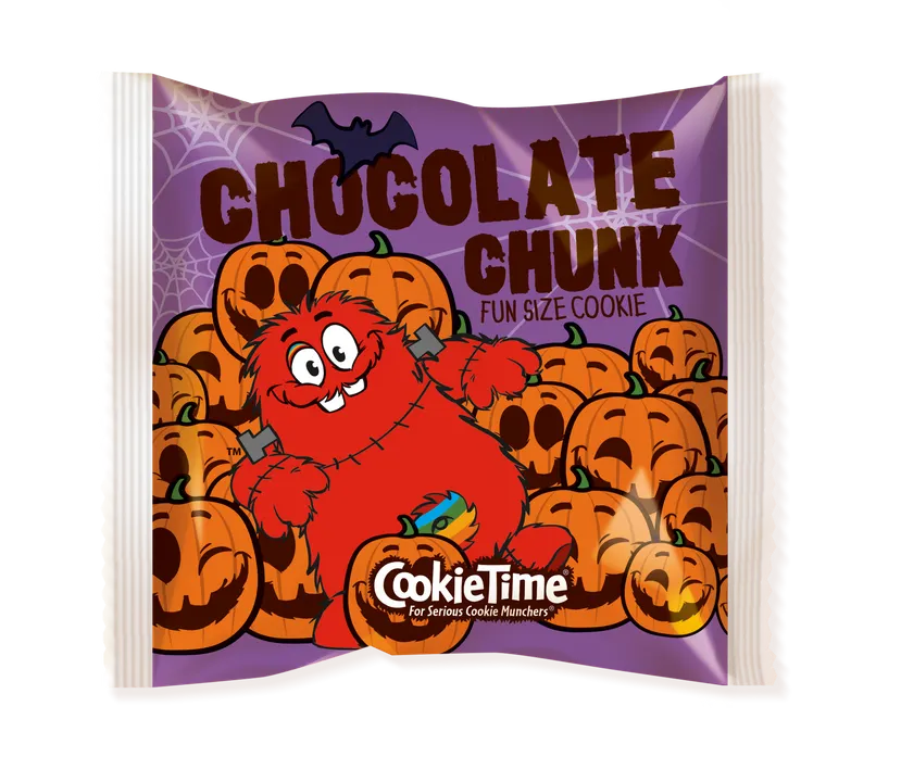 🔳カリっとした食感にゴロっとしたチョコを使用したクッキー。ニュージーランドで知らない人はいないほど有名なクッキータイムの期間限定ハロウィンバージョン!友達・家族・職場の仲間のプレゼントやシェアするには最適! 🔳ニュージーランド産小麦粉、バグラスフェッドバターを使用。 🔳掲載画像の4種類個包装デザインがランダムに7個入っております。 【クッキータイムとは?】 1983年にクライストチャーチで生まれ、今ではニュージーランドで知らない人がいない程有名です。スーパーマーケットやコンビニはもちろん、ホテルの部屋に置いてあったり、ニュージーランド航空で機内食として配られたりもするので、ニュージーランドを訪れる人は必ず目にすることになります。ニュージーランドお土産菓子代表!今では原宿にも直営店をオープンし焼きたてクッキーを提供する人気ショップです。 【クッキータイムのクッキー】 お母さんが焼いてくれたホームメイドクッキーのようにフレッシュバターやゴロっとしたチョコレートチャンクを使用。 【クッキータイムのキャラクター<クッキーマンチャー>】 クッキータイムのオリジナルキャラクターはクッキーモンスターではなく、「クッキーマンチャ―」という名前で、クッキー同様ニュージーランドで愛されています。いたずら好きのクッキーマンチャー!マンチャーは「むしゃむしゃ食べる人」という意味で、その名の通りおいしそうにクッキーをむしゃむしゃ食べています。