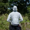 「EAT SLEEP FISH REPEAT®︎」。私たち釣り人の「生活」そのものです。 コットンタッチポリエステルによる乾くスウェットフーディー(パーカー)に、デザインされた「EAT SLEEP FISH REPEAT®︎」のキャッチコピーを背中にプリントしました。しっとりと柔らかく着心地の良いまるでコットンのようなポリエステルの裏毛は、高い吸水性と速乾性を兼ね備えています。 「釣り」に取り憑かれた私たち釣り人の生活は、だいたいこんな感じ。 「EAT」「SLEEP」「FISH」「REPEAT」たった4ワードでシンプルに表現しました。 「ロッドから垂れた糸」「波紋」で「釣りのシーン」も表現。 シンプルながらもメッセージ性が高いデザインに仕上げました。 釣り場で釣りをしている際にもアピールできるように「バックプリント」にいたしました。 乾きが早いので、遠征にもオススメ。 この商品のボディにはBRING Material™(再生ポリエステル)を25%使用しています。 BRING Material™は、服から服をつくるBRING™が、使われなくなった服を消費者から回収する活動を様々なブランドと連携して実施し、回収した服のポリエステルを独自のBRING Technology™により化学的にリサイクルし、まったく新しいポリエステル原料に生まれ変わらせたサスティナブルな再生ポリエステル樹脂です。この樹脂を原料にすることでバージン品質と同等の糸や生地を作ることが可能です。  BRINGについて BRING™は服から服をつくるために、使われなくなった服を消費者から回収する活動を様々なブランドと連携して行っています。回収した服のポリエステルは独自のBRING Technology™により化学的にリサイクルされ、まったく新しいポリエステル原料に生まれ変わります。この原料を加工してつくられた糸や生地などのサスティナブル素材がBRING Material™です。ポリエステル以外の原料も可能な限り資源にまで再生しています。 ※商品の色は「モニターの設定や再現性」「撮影時の光源」「実際の商品を見る際の光源」などが原因で、実際の商品の色と異なって見える場合がございます。あらかじめご了承くださいませ。 ※できる限り印刷位置がずれないように配慮しておりますが、シルクスクリーン印刷の特性上、印刷位置がわずかにずれる場合がございます。製造の都合上避ける事ができませんので、あらかじめご了承くださいませ。 ※製造誤差及び測定誤差により、記載のサイズや重さと誤差が生じる場合がございますが、製造の都合上避ける事ができません。 -- ※「BRING™️」および「BRING Material™️」「BRING TechnologyBRING Material™️」は日本環境設計株式会社の登録商標です。 ※「EAT SLEEP FISH REPEAT®︎」は株式会社GOODIEの登録商標です。