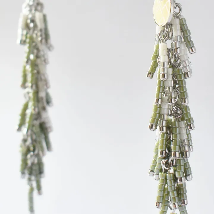 昔から和食に利用されており 日本を代表するハーブの一つのシソ 9月上旬頃になると 花を咲かすための花芽のついた花穂を伸ばし 稲穂のように花穂の軸に沿って 小さな白色の花をたくさんつけます 花穂は食べるととてもおいしいのですが 食する前に可憐な花々を眺めてほしいものです material SILVER925(ピアス金具)、SILVER925 ロジュームメッキ(イヤリング金具)、ガラスビーズ、真鍮、チタン、シリコン *シルバービーズはパラジウムメッキ加工を施したものを使用しております *取り付ける金具によって、使用している金属が異なります size 約13x63mm weight 約3.3-4.4g *取り付ける金具によって、重さが異なります *CACICOの商品は全て1点1点制作しているため、個体差があり、商品写真と差がある場合がございます。ご了承の上、ご購入ください。 *金属アレルギーの方はご使用をお控えください *受注生産のため、ご注文確定後1週間〜10日以内に商品を発送いたします