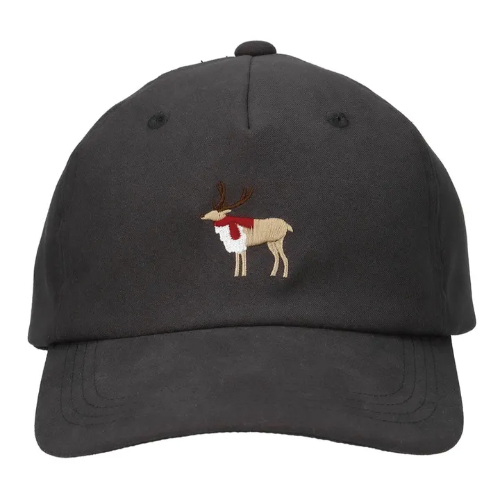 冬の動物刺繍をフロントに施したローキャップ。優しい質感のピーチスキン生地を使用。刺繍と生地の風合いが絶妙にマッチしています。