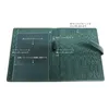 A5サイズのメモパッドホルダーです。レポートパッド(ロディア16も収納可能)と共にサイドポケットにA5サイズのノートも同時収納可。 インナーに付けた二つの大きな縦ポケット、太めのペンも収納できるペンホルダー。 会議や打ち合わせ、取材等、いろいろまとめて持ち運べるので、社内・社外を問わず重宝すること間違いありません。 フラップタイプなので開閉も簡単です。 素材はCONCERIA 800 (コンチェリア・オットチェント)社代表作の1つでもあるバケッタレザー VOLANATO(オイルシュリンク)を、内側には上品なレーヨン生地(グリーン)を配色しました。 オイルをたっぷりと含んだシュリンクレザー 、これこそが本物の革と実感していただけるエイジングが自慢です。 サイズ:約 227 × 180 × 22 mm 外 側:VOLANATO (オイルシュリンク) 内 側:VOLANATO (オイルシュリンク) 内 側:レーヨン 色・柄:NERO(BLACK)、PENTROL(GREEN)、NATURALE(NATURAL) 個 装:上下貼り箱 名入れ:不可