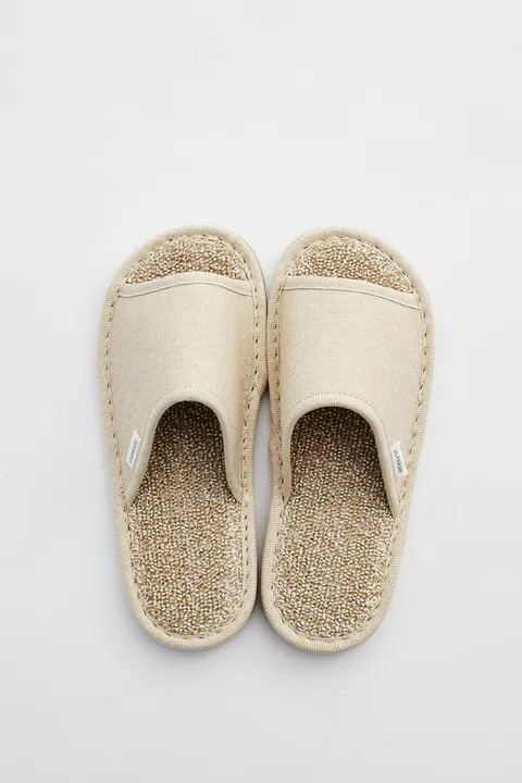 ささ和紙をパイル状にすることで生まれるしっかりとした、硬めのコシ。足裏への心地よい刺激が足をリフレッシュしてくれます。内側までささ和紙だから、吸湿性がよく、いつも清潔。底はカッチリタイプですが、軽くて快適。 ※キャメル・グレー/S(?23cm)の取り扱いはございません。 通年定番アイテムのスリッパ 汗をかいたり、蒸れたりする足。なんと足の裏には1平方センチメートルあたり 300 個も汗腺があり、多い時には両足で1日に 200ml の汗を出しているそうです。 皮膚の表面にある細菌が汗の水分で活発になり、垢や皮膚の脂をえさにしてどんどん増え、 臭いを出します。 そこで活躍するのがささ和紙のスリッパ。吸汗、吸湿性に優れる「ささ和紙」はすばやくムレを取り除き、抗菌防臭効果を発揮します。 ぜひ、皆様もささ和紙のスリッパを実際に使用して実感してみて下さい。 スリッパの心地よさ 1.サラサラな肌触りで快適に 足がムレず、さらさらのはき心地。特に素足ではくことをおすすめします。履くだけで足がしっとりすべすべに。 2. 左右非対称 前開きタイプのスリッパにも関わらず、足入れと履き心地を良くするため、左右を設けました。 3. 清潔感 洗濯をくり返しても、ささ和紙の抗菌防臭効果は持続します。足汗の匂いが気になる方にも効果的です。