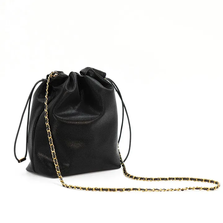 軽いふんわりチェーン巾着バッグ ブラック