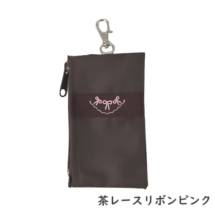 リール式キーケース ランドセルに装着したまま鍵の開閉可 同デザイン5個入 レースリボンピンク(茶色)