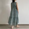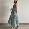 • • • • • • • • • • • • • • • • • • • • • / 重ね着できる万能ワンピース \ 深めのネックと広めのアームホールでTシャツやブラウスなどを重ね着してジャンパースカート風にも楽しめるデザインにしました。 暑い時期はキャミインナーを中に着てラフ感あるコーデになります!インド綿100%の裏地付きなのでペチコート等は不要です◎ 4本のウエスト紐をサイド or 前後で結んで体型に合わせてウエストマークもできます。 ポケット・裏地付きで着心地・利便性も◎ * 胸元のボタンホールはインドの縫い子さんによる手縫いで仕上げられたものものもございます。 • • • • • • • • • • • • • • • • • • • • • ▶︎ One size ▶︎ Size 平置きサイズ、着用モデル身長167cm (普段M-Lサイズを着用) - 総丈 120cm / バスト幅50cm / ウエスト幅52cm / 肩幅34cm / アームホール25.5cm * 上記のサイズ±0.5〜1.5cm 差がある場合もございます。 * 総丈以外のサイズは120cm丈、130cm丈どちらも同じです。 ▶︎ 素材 - 生地 : インド綿 100%、ブロックプリント - ボタン : 貝ボタン ▶︎ 生産 - インド パートナー工場 ▶︎仕様 - ポケット / 裏地付き (インド綿100%) • • • • • • • • • • • • • • • • • • • • • ▶︎お手入れ方法 *着用前に一度水通し(冷水で)をしてください。 |洗い方 ブロックプリント生地は色落ちの可能性がありますので、水(お湯ではなく冷水)での単品洗い・手洗いをおすすめします(お湯で洗うと縮んでしまう可能性があります)。強く擦って洗うとプリントが落ちる恐れがありますので、優しく手洗い・押し洗いしてください。 |干し方 縮んでしまうので乾燥機は使用しないでください。 色褪せ防止のため、陽の当たらないところで干してください。 • • • • • • • • • • • • • • • • • • • • • ブロックプリント生地の風合いについて 一回一回、職人さんが木版を押して出来上がる生地のためマシーンプリントやスクリーンプリントとは異なりプリントのかすれ・ズレ・色ムラ・インクの跳ねなどがございます。ブロックプリントならではの手作りの温もりをお楽しみください。 ブロックプリントの風合い・柄の出方は1点ごとに異なり、柄が左右完全対照でないこともございます。ブロックプリントの風合いをご理解いただいた上でのご購入をお願いいたします。 • • • • • • • • • • • • • • • • • • • • • 各色柄・サイズ3-5着の販売。インド現地で入手できる生地はその時で変動があるため、増産予定はありません。 インドの職人さんが一つ一つ丁寧に縫製してくれていますが、数mm縫製のズレがある場合がございます。 生地に着用・洗濯に問題ない小さな織り傷がある場合もございます。 • • • • • • • • • • • • • • • • • • • • •