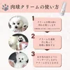 ご使用方法 ①クリームを塗る前に汚れを落とします。 ②クリームを適量手に取って肉球に塗布します。 ③足を包み込むようにマッサージしながらクリームをなじませます。