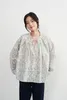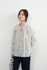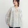 KNXC526・花柄プリント綿100%長袖タックデザインブラウス・ナチュラル系プリントシャツ LGREEN系/FREE
