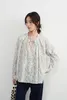 デザインのアピールポイント このブラウスは、上品な花柄プリントが施されており、女性らしさを引き立てるデザインです。襟元のリボン結びが華やかなアクセントとなり、タックデザインが立体感を演出。シンプルながらもディテールにこだわった一着で、エレガントな雰囲気を纏えるアイテムです。 生地の特徴 綿100%の生地を使用しており、柔らかく肌に優しい着心地が特徴です。通気性が良く、季節を問わず快適に過ごせます。また、綿素材ならではのナチュラルな質感が、花柄のプリントと相まって、清潔感のあるスタイルを演出します。 コーディネートの提案 このブラウスは、シンプルなボトムスと合わせるだけで上品なスタイルが完成します。例えば、スリムパンツやスカートと組み合わせて、オフィスカジュアルとしても活用可能です。また、デニムやワイドパンツと合わせれば、カジュアルなシーンでも活躍します。足元にはパンプスやフラットシューズを選んで、軽やかで洗練されたコーディネートを楽しんでください。 単位(cm)モデル身長165cm サイズ FREE 着丈 60 バスト 106 裄丈 76 素材:綿 100% 中国製 透け感:なし 生地の厚さ:普通 光沢感:なし 裏地:なし 家庭洗濯:可能 【注意点】 ※撮影商品はサンプルの為、実際の仕様と異なる場合がございます。 ※画像の商品は光の照射や角度、お使いのモニター環境により、実物と色味が異なる場合がございます。スタジオ物撮りの画像が実物の色味に一番近くなっております。 ※予約商品の場合、お届け予定はあくまでも目安となります。 生産の都合上、お届け時期がずれる場合がございますので、あらかじめご了承ください。 ※表記サイズは商品の実寸です。 ※布製品の特性上、サイズ表の実寸法は多少の誤差が生じる場合がございますので、予めご了承ください。