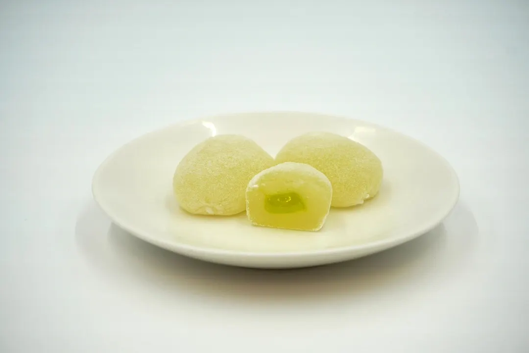 広島県産のシャインマスカットを使用した特製ジャムを、柔らかな求肥で包んだ一口サイズのお餅です。羽二重餅の製法で蒸した餅粉に、水あめや砂糖を加えて練り上げた求肥で、芳醇なシャインマスカットジャムをやさしく包み込んだ、なめらかで上品な味わいが特徴です。