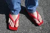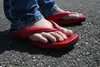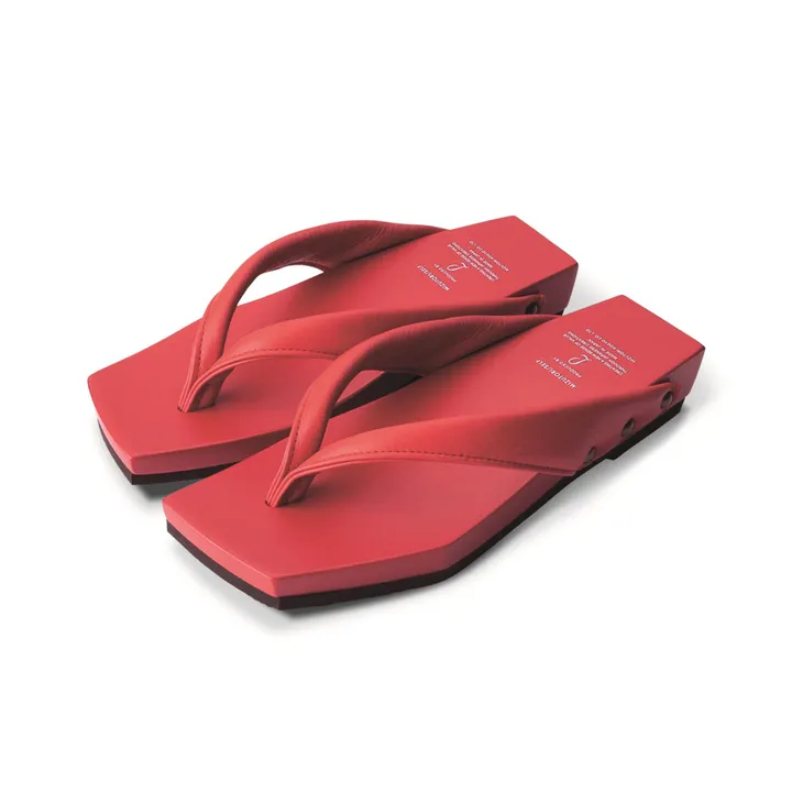 おしゃれのアクセントに、冴える赤い下駄。 都会的な大人の男性向きな粋なデザインでスマートな足元を演出します。