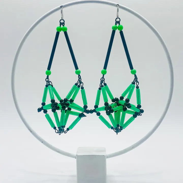 テキスタイルシリーズ◯NeonGreenGeorgette◯ 細長い竹ビーズを残布の緑ジョーゼットを使用し、一からビーズを作っています 仕上げにコーティングしているので水に濡れても丈夫な仕様となっています こちらの残布は私が洋服制作の時に出た残布です mUIk定番3Dハートシリーズのピアス/イヤリングです。 少し大振りですが、とても軽いです。 耳の負担は軽減されてますのでご安心ください。 ⁂mUIk UPCYCLE Story⁂ 衣服の大量生産・大量消費が拡大し、ライフサイクルの短期化によって大量破葉に繋がっているこの現状にファッションが大好きな私にとってとてもショッキングなことでした。 ただ捨ててしまう衣服や残布を私もなりにどうにか再利用することができないか考えた時 出来上がったのがこの作品です。 ほんの少しのことかもしれませんが少しでも持続可能なことに貢献できたら幸いです。