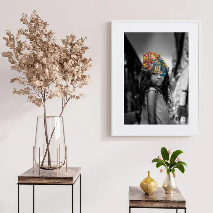 アーティスト -PROFILE- 藤本 麻弥 / Maya Fujimoto(マヤ フジモト) 2000年よりスペインの国境付近のフランス在住 リゾート地の観光局で広告デザイン全般を担当 人の価値観を変える事、さまざまな色や形で溢れ出る感情や世の中の傷、 生きる歓喜と哀しみのようなメッセージを表現したいと思っている。 主に雑誌の切り抜きや折り紙を使ったアナログコラージュ、 フォトショップを使ったデジタルコラージュを世界に発信する。 【作品について】 白黒のモノクロの色味がない少女の写真。 真っ直ぐと見つめる視線に何を思う? 彼女の頭には幻想的で鮮やかで美しい海外の街並みが 作品名:village 手法:写真、デジタルコラージュ ペーパー:高品質半光沢紙 マットカラー:白 マット*:DXホワイト芯 100%バージンパルプ/PH7・中性紙(2mm厚) ※全てのアートにマットがつきます フレームカラー:黒、白、無垢(3種類から選択) ※マット付のため通常とはフレームサイズが異なる規格となります。 【マット*とは?】 アートポスターの周りに挟んだ厚紙の事。 マットを使わない時に比べ余白により広がりが生まれ、作品の新たな一面を引き出せ作品の見栄えがグッと良くなります。また、額縁のガラス面と作品が直接触れたままにしておくと、くっついて作品を傷つけることがあります。マットを使用することでガラスと作品の間に空間ができ、作品を保護することができます。ブランドコンセプトにより全てのアートにマットがつきます。 ー ファッションのようにアートを ー 私達が掲げるコンセプトです! 毎日着替えるファッションの様に、アートも気軽に飾り変えて欲しい... 一旦飾り終えたアートにも光を当ててほしい... ポスター単体、またはリピートで中身だけのポスターを購入された方に"専用のハンガー"をセットでお届け。 「今までに無い!新しいアートの飾り方を提案」 飾る事がなくなった前のアートをハンガーにかけて洋服と一緒にかけてもらう。 その日の気分や、モチベーションですぐに取り換えられる様に。 もちろん、魅せる収納としても今までにないおすすめの飾り方です。