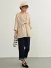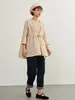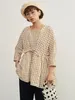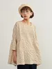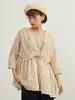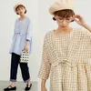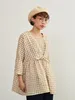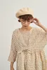 KNXT416-ギンガムチェックプルオーバー・スクエアネック・前リボン7分袖トップス BEIGE/FREE