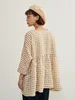 ポコポコ感のある表面は、触り心地が豊かで立体感をもたらし、シーズンを問わずスタイリッシュな印象を与えます。通気性がありつつ、しっかりとした質感が特徴で、長時間着用しても快適な着心地を提供します。 スクエアネックラインが女性らしいエレガンスを引き立て、前面のリボンがトップスに独自のアクセントを加えます。前リボンを結ぶことで生まれる畳んだタックの仕様。これにより、レイヤード感が生まれ、立体的でおしゃれな印象を与えます。シンプルながらも遊び心あるデザインが、ファッション愛好者に喜ばれることでしょう。 コーディネートの提案: このトップスはその独自のデザインにより、一枚で存在感を放つことができます。デニムスキニーやワイドパンツとの相性が良く、カジュアルなデイリーコーディネートにもぴったりです。また、スカートと合わせても女性らしさが引き立ちます。羽織りものをプラスしても良いですし、シーズンによってはジャケットとの相性も抜群。おしゃれなレイヤードスタイルを楽しんでください。 #チェック#ギンガムチェック#七分袖#スクエアネック#リボン#2WAY#タック#レトロガーリー#春夏#レディース#春服#新作#黒
