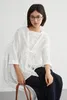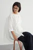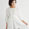 KNXT416-ギンガムチェックプルオーバー・スクエアネック・前リボン7分袖トップス WHITE/FREE