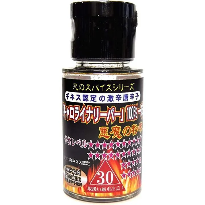 ★ギネス世界一認定の激辛とうがらしが原料! ★キャロライナリーパー100%! ★肉料理や揚げ物、スナック菓子などが手軽に激辛料理に! ★冷凍食品にもそのままかけるだけで簡単激辛グレードアップ! ★辛い食べ物がお好きな方は是非一度お試し頂きたい超激辛な唐辛子です! ★大人気「死のスパイス」ブランドシリーズ商品です! ★超〜激辛!そのまま舐めると、ズバリほんの少しでも痛さを感じます 【使用方法】 そのまま食べ物にかけてお使いいただけます。 【原材料・成分】 激辛唐辛子(キャロライナリーパー100%) 【保存方法】 直射日光、高温多湿を避けて保存してください。