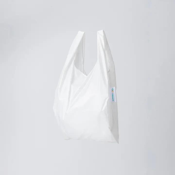 上着の胸ポケットにも収納できる程のコンパクトさを実現した『Loopach EcoBag S』。愛称は“Onemile”。パッカブル設計によって、「ちょっとそこまで」の外出でも手ぶら感覚に携帯できる優れものです。Loopachの為に一から開発された超極薄軽量20Dナイロンタフタ生地は、シルキーな滑らかさが魅力。日本の技術力によって実現した極薄生地で軽量ながら強さも持ち合わせた画期的なバッグが完成しました。記念すべきファーストモデルで我々が採用した素材は、生分解性ナイロン繊維 (Amni Soul Eco®)。生分解性素材を最大限生かし環境負荷を軽減する為、染色は一切行わず、無染色の乳白色のみの展開となります。このUndyed Whiteこそが、我々がスタイリッシュだと考える新しい色表現です。もちろん、家庭での洗濯も可能。 また、日本国内で開発したNFC内蔵のネームタグは、ユーザーがレジ袋を断るアクションを可視化する媒体に。端末にかざして使えば使うほど、アプリ上に自身の環境・社会への貢献が可視化していく新しい価値を持ったバッグです。