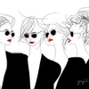 【現代アートポスター】スタイリッシュ 都会的な大人女子 サングラス モノトーンイラスト A4(S) 28.8×37.8cm(ポスターのみ)
