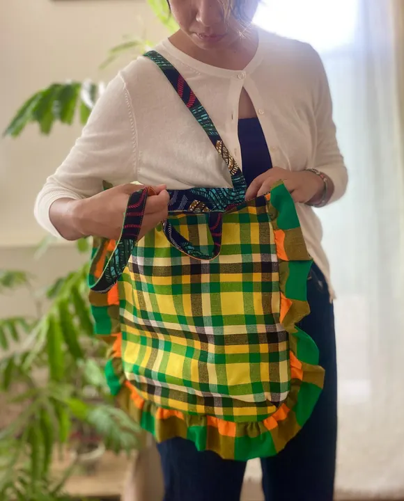【マサイシュカバッグシリーズ ・FURIRU】 寒暖の差が大きいサバンナで暮らすマサイの人々が身にまとうブランケット「マサイシュカ」を使用したFURIRUトートバッグ。 ライオンを倒すことで、真の男と認められる「戦う戦士」マサイの人々。 そんな戦士の布をFURIRUに変え、可愛いファッションアイテムに。 フリルを女の武器として、装いを楽しみましょう! ***************** <MauWaのこだわり> ◯前後ろで布の組み合わせが異なり、2wayでお楽しみいただけます。 ◯裏地には、鮮やかなアフリカンプリントを使用。 ◯内ポケット付き。 ◯A4サイズが入るサイズ。 財布、水筒、手帳、A4ファイルなど定番アイテムがピッタリ入ります。 ◯バッグ底部分に切り込みを加え、若干マチが出るように工夫しています。 【サイズ】(約) 縦:フリル有 41cm / フリル無し35cm 横:フリル有 43cm / フリル無し 31cm 取手:59cm 取手幅:2.3cm 【素材】 マサイシュカ :アクリル 裏地:アフリカンプリント :コットン 【色】 緑黄色 【原産国】 布類・縫製:ケニア ※洗濯は可能ですが、色落ちする可能性もありますので、はじめは手洗いがおすすめです。